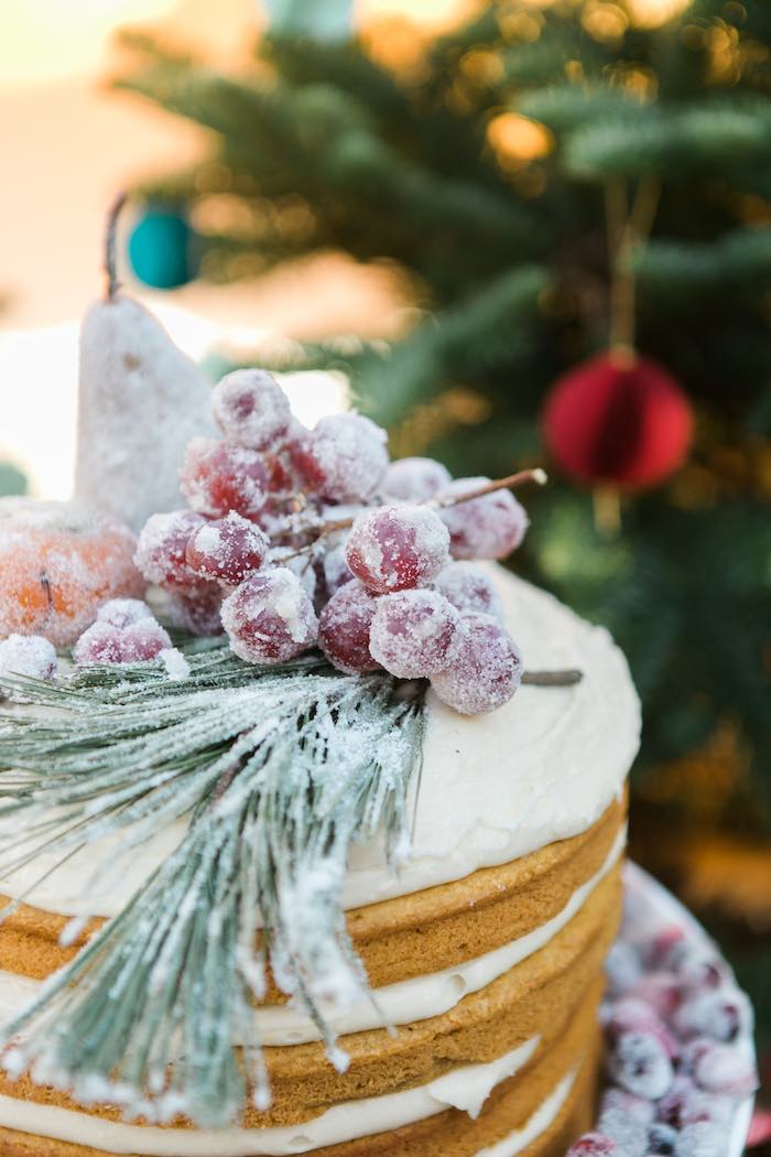 Biensur, on n’oublie pas les crackers de toutes les couleurs, un joli gâteau de Noël aspect givré, comme s’il était resté dans le froid toute la journée.