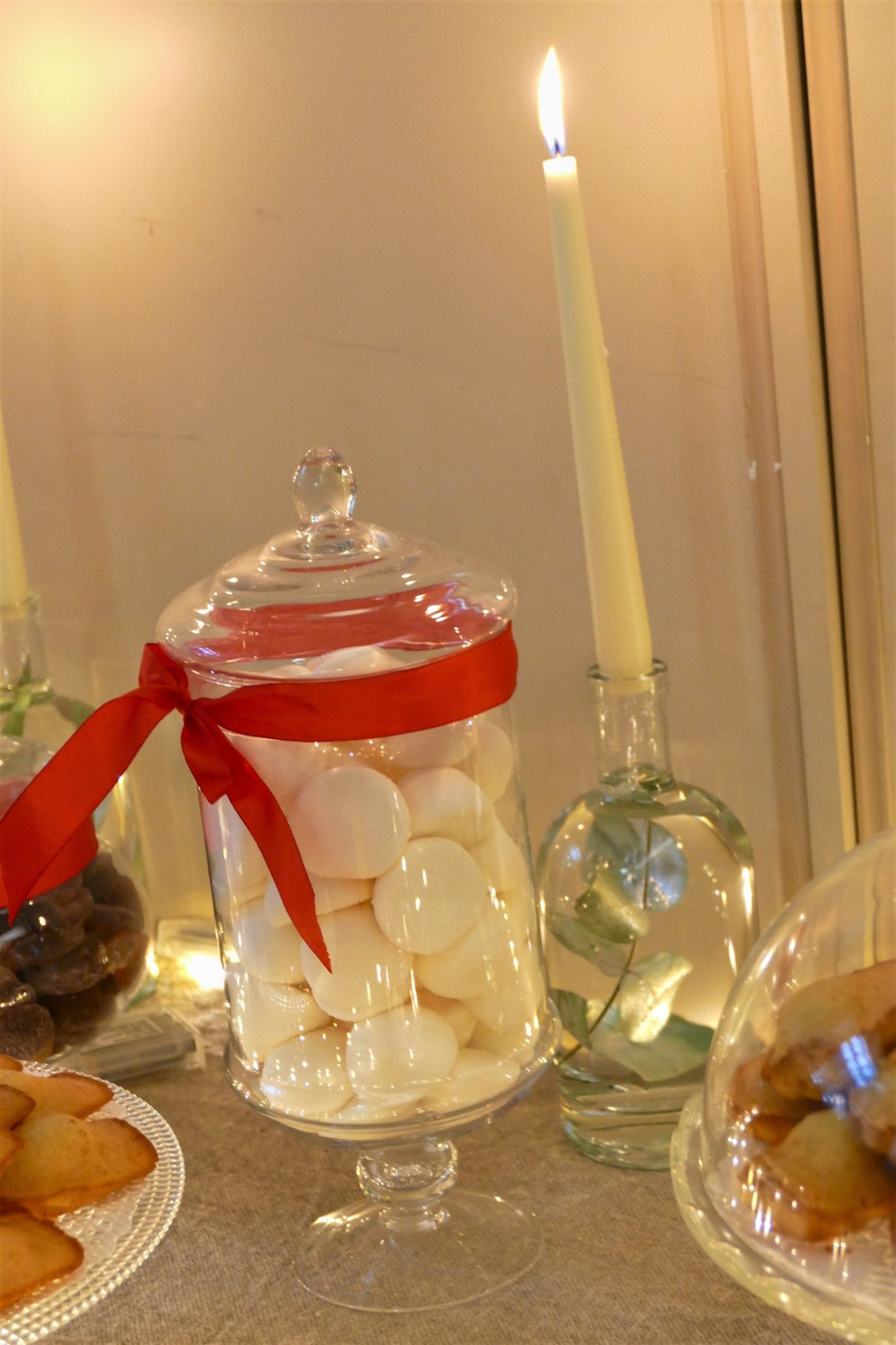 Biensur, sur le bar à pâtisseries j’ai disposé des cookies, des madeleines et des pâtes de fruits Bonne Maman. Je vous montre ça en images ci dessous ;