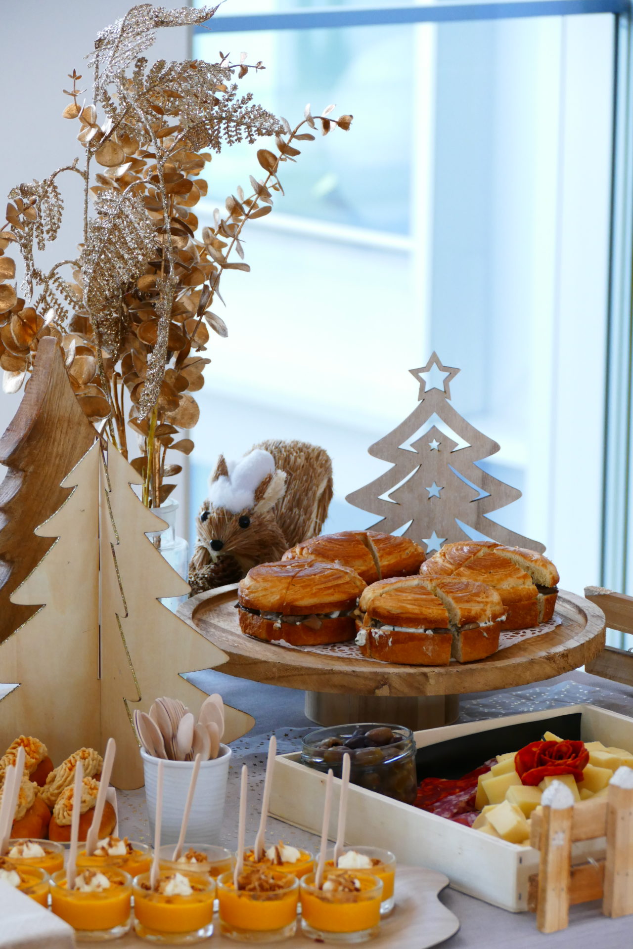 Me revoilà le 8 décembre chez Hermès pour la réalisation d’un lunch de Noël tout en or et bois. Vous aimez l’ambiance ? Voici quelques photos des verrines de potimarron, des planches de charcuterie/fromages AOP, des sablés décorés de Noël, des meringues sapins, …